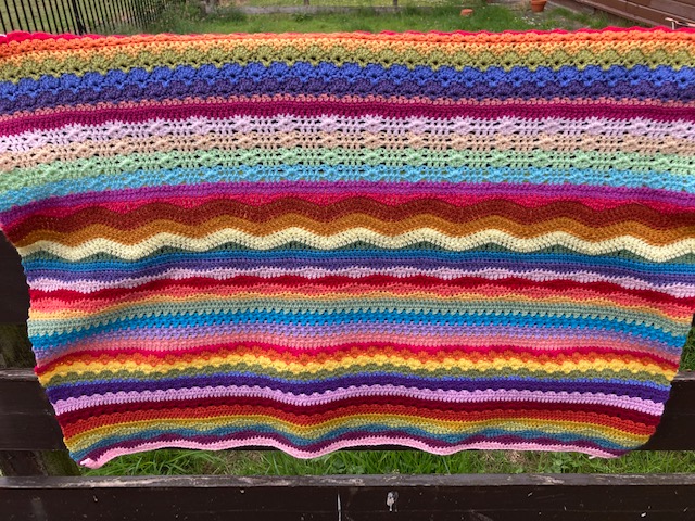 So, after those pesky ripples of last time, I wanted to work a simple, soothing stitch.. And what better than the sweetpea, or trellis, stitch. I also opted for soft pastel shades for these few rows.